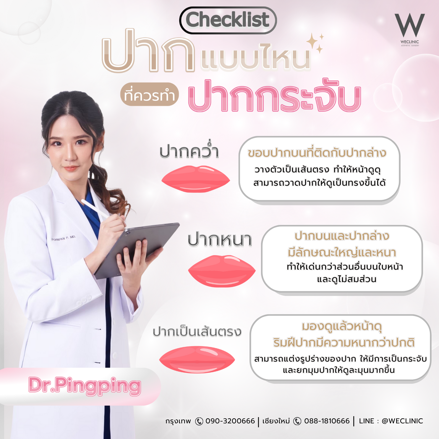 However, for anyone interested in cupid’s bow lip surgery, it is essential to first have a consultation with a qualified surgeon and choose someone who is genuinely experienced in lip surgery. At We Clinic, cupid’s bow lip surgery is performed by Dr. PingPing (Dr. Pornpun Pornthanachai), a specialist in lip contouring and cupid’s bow reshaping. She uses We Clinic’s signature “Lifting Smile” technique, which focuses on precise surgical planning, gentle and minimally traumatic operation, reduced swelling and bruising, and meticulous suturing to support smooth healing.
